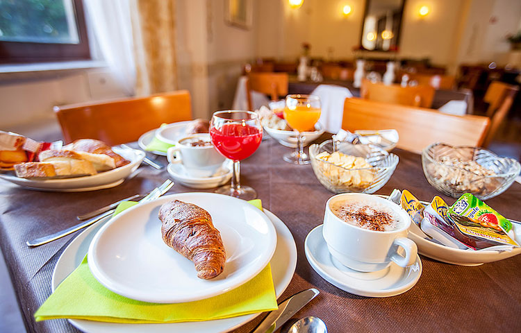 Il ristorante offre agli ospiti una colazione ricca e variegata, due primi e due secondi a scelta, vari contorni ed insalate. Il tutto in un ambiente climatizzato.