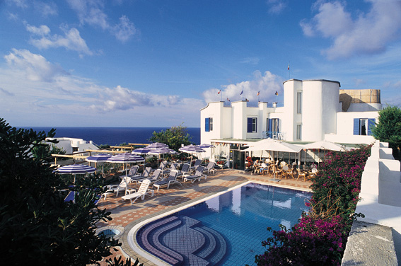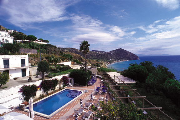 L’albergo, recentemente ristrutturato, è dotato di sala ristorante, bar, internet point, solarium, terrazza panoramica, sala massaggi, piscina termominerale, sala TV-SAT, e vanta una splendida vista panoramica sul suggestivo porticciolo e sulla baia dei Maronti. È raggiungibile in dieci minuti dai parcheggi all’ingresso del paese.