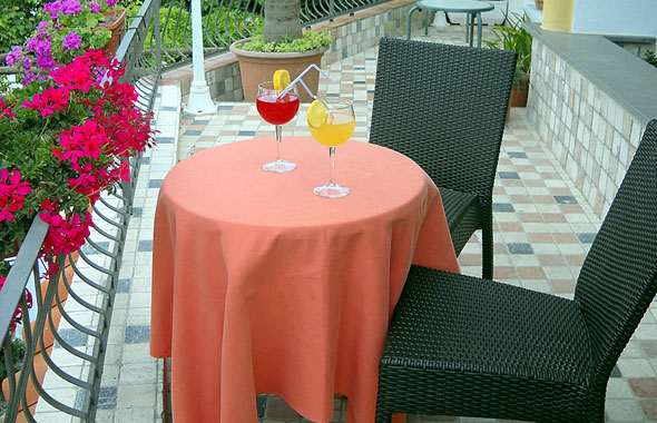 Le 16 camere sono arredate con raffinatezza ed eleganza, tutte dotate di aria condizionata, TV-SAT, frigobar, telefono, servizi privati, phon e balcone o terrazzo con vista mare.